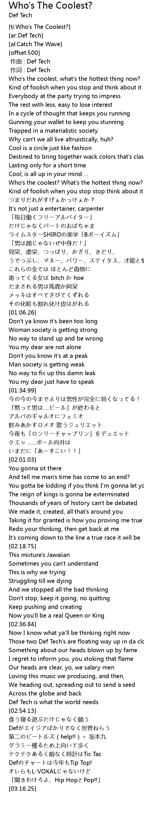 | [02:52.84] | Def Tech is what the world needs |