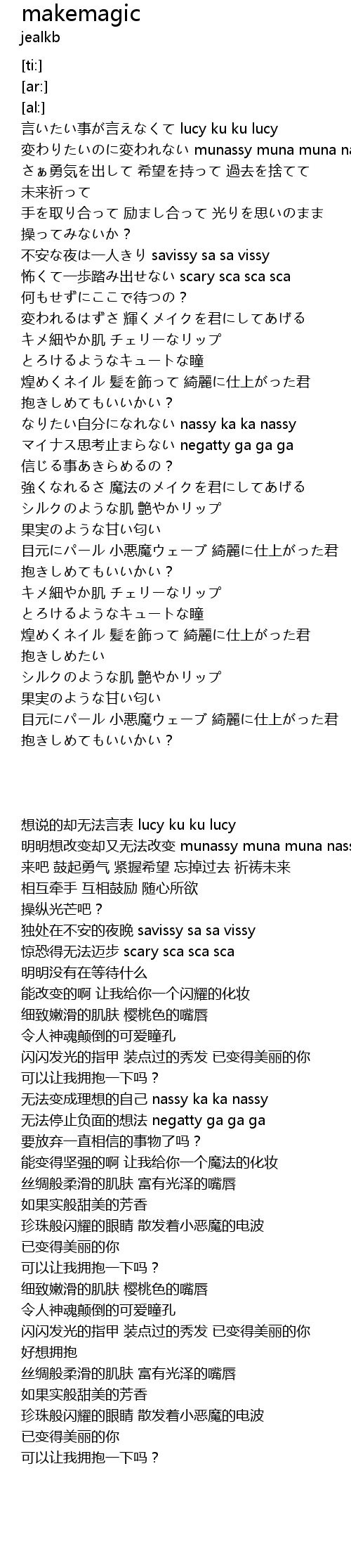 | [01:50.98] | 強くなれるさ 魔法のメイクを君にしてあげる |