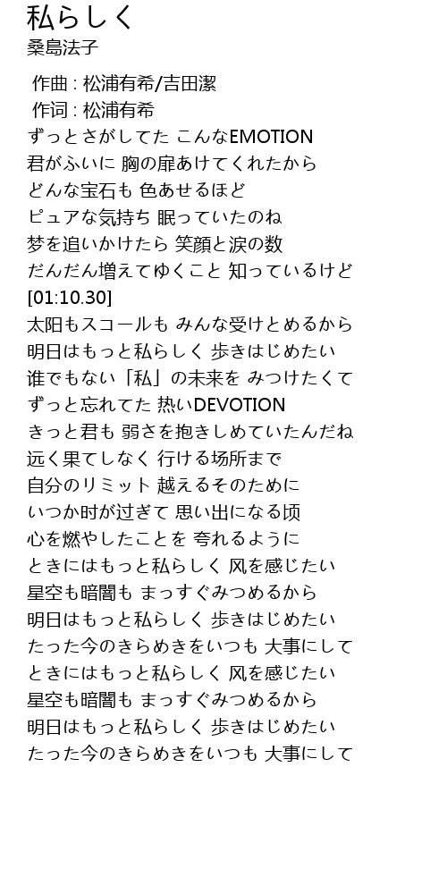 | [02:57.77] | 明日はもっと私らしく 歩きはじめたい |