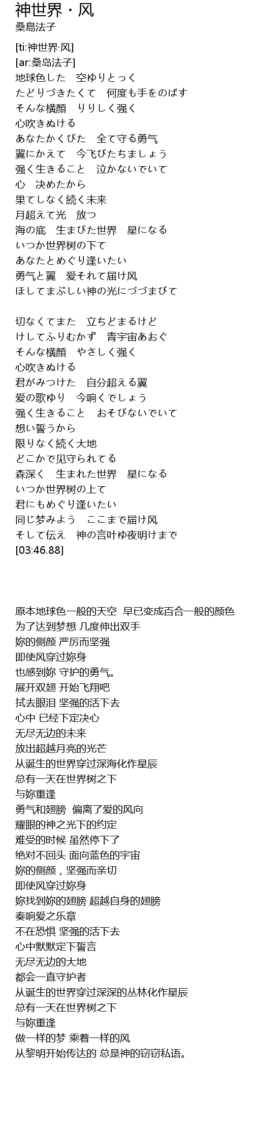 | [03:01.69] | 森深く 生まれた世界 星になる |