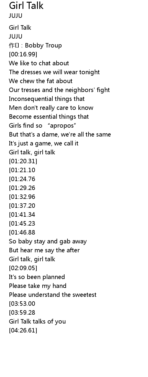 | [04:01.03][03:53.00] | Girl talk, girl talk |