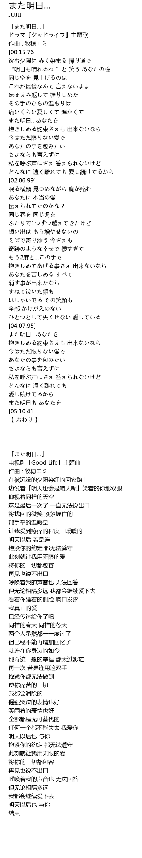 | [00:04.76] | ドラマ『グッドライフ』主題歌 |