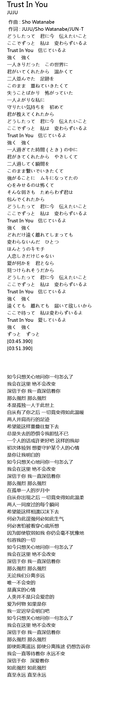 | [00:01.00] | zuò cí : JUJU Sho Watanabe JUNT |