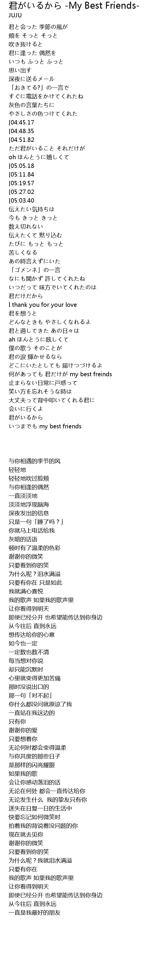 | [03:53.56] | 何があっても 君だけが my best freinds |