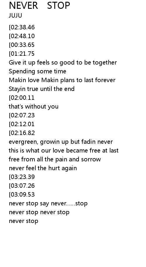 | [00:16.00][02:38.46][04:14.46] | JUJUNEVER STOP |