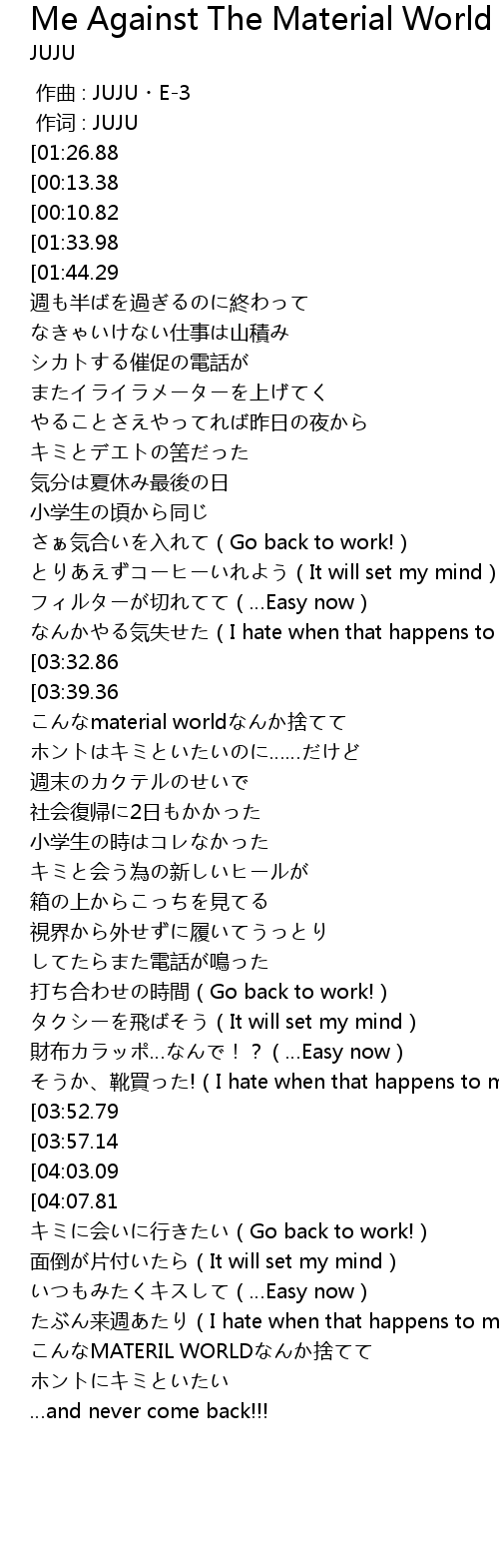 | [00:01.00][01:26.88][02:52.44][04:18.80] | JUJU-me against the material world |