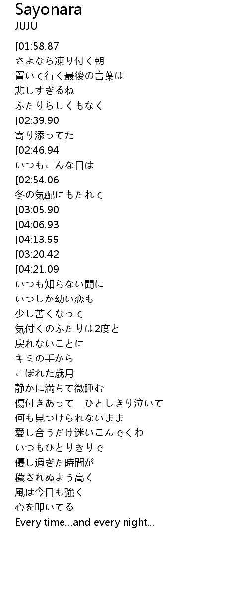 | [00:21.00][01:58.87][04:35.24] | JUJUsayonara |
