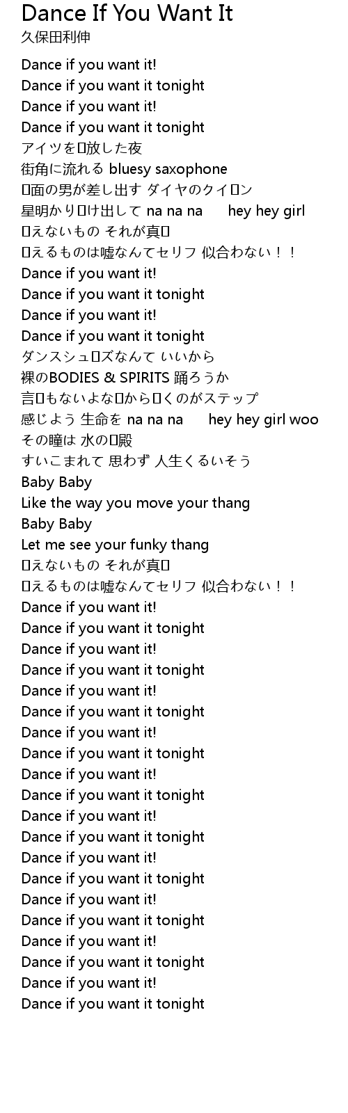 | [01:43.50] | 裸のBODIES & SPIRITS 踊ろうか |