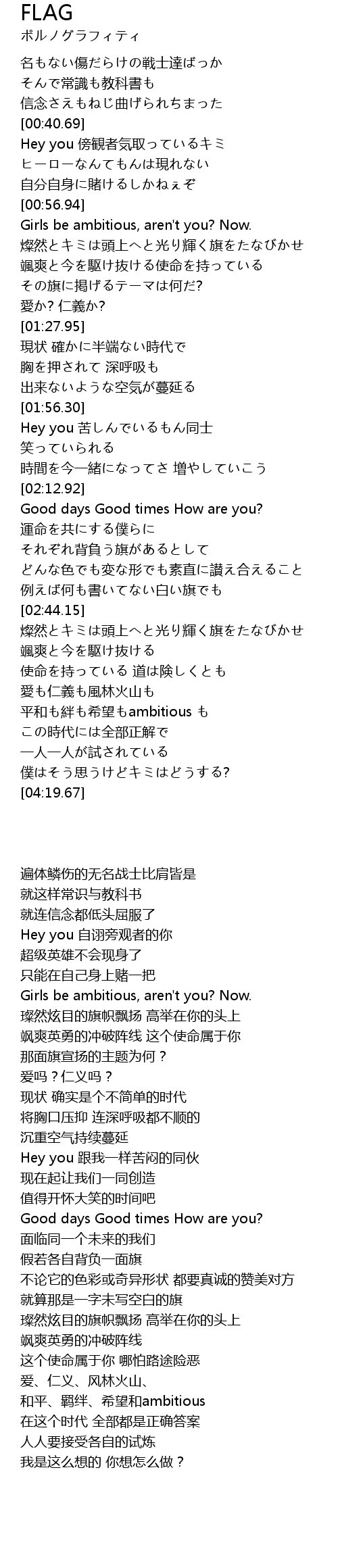 | [03:59.27] | 平和も絆も希望もambitious も |