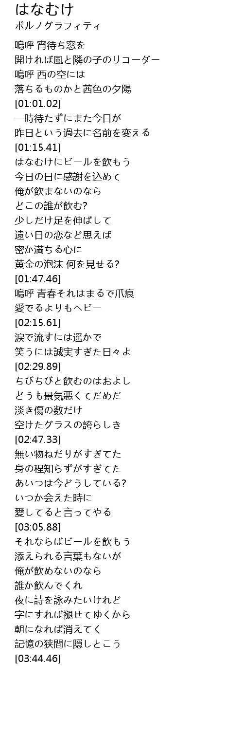 | [00:38.12] | 開ければ風と隣の子のリコーダー |