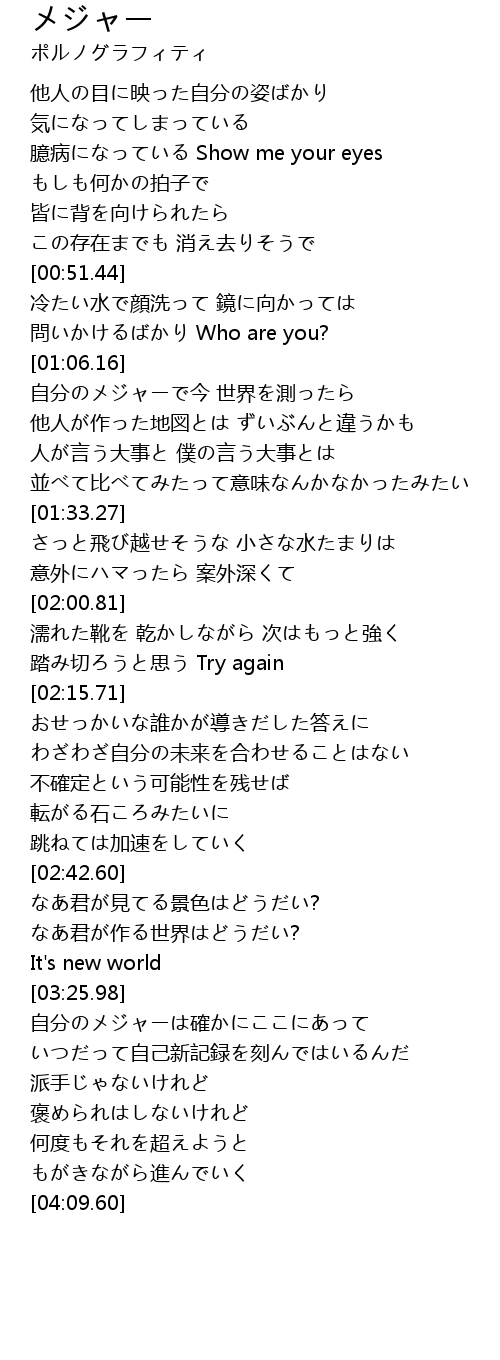 | [01:06.66] | 自分のメジャーで今 世界を測ったら |