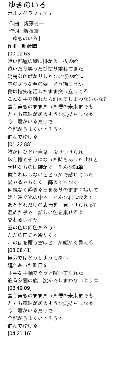 | [00:33.00] | 雪のような君の姿 どう描こうか |