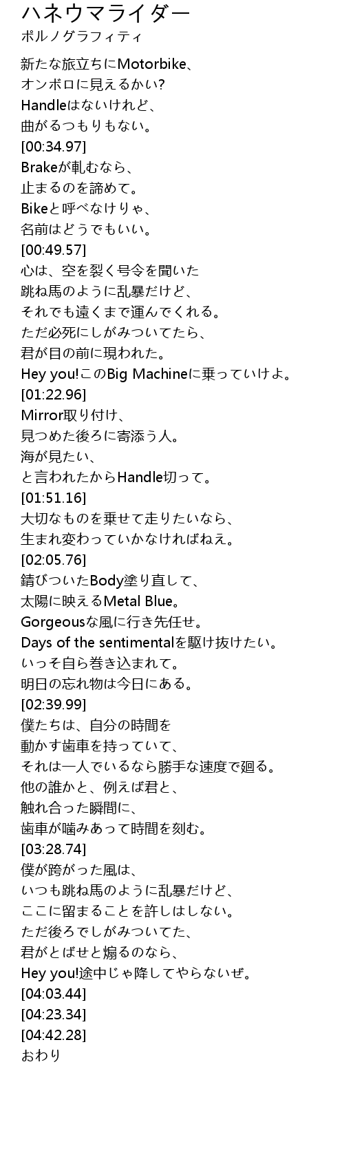 | [00:20.22] | 新たな旅立ちにMotorbike、 |