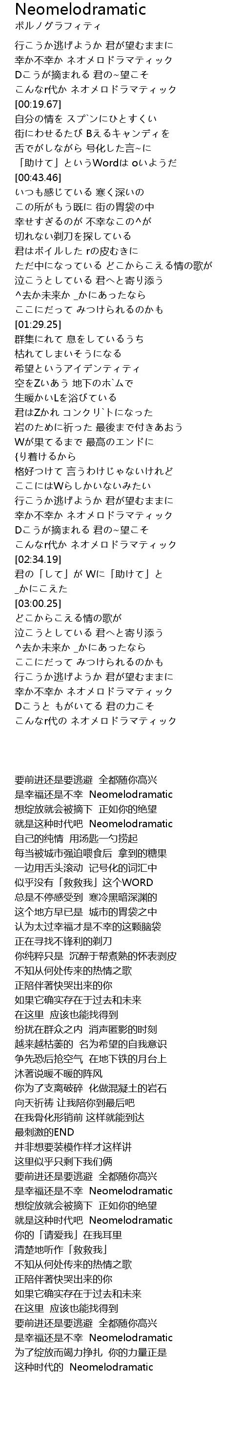 | [03:27.95] | こんなr代の ネオメロドラマティック |