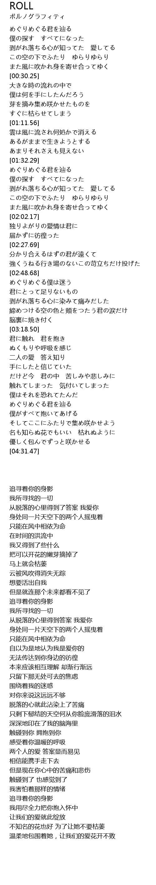 | [01:48.05] | この空の下でふたり ゆらりゆらり |