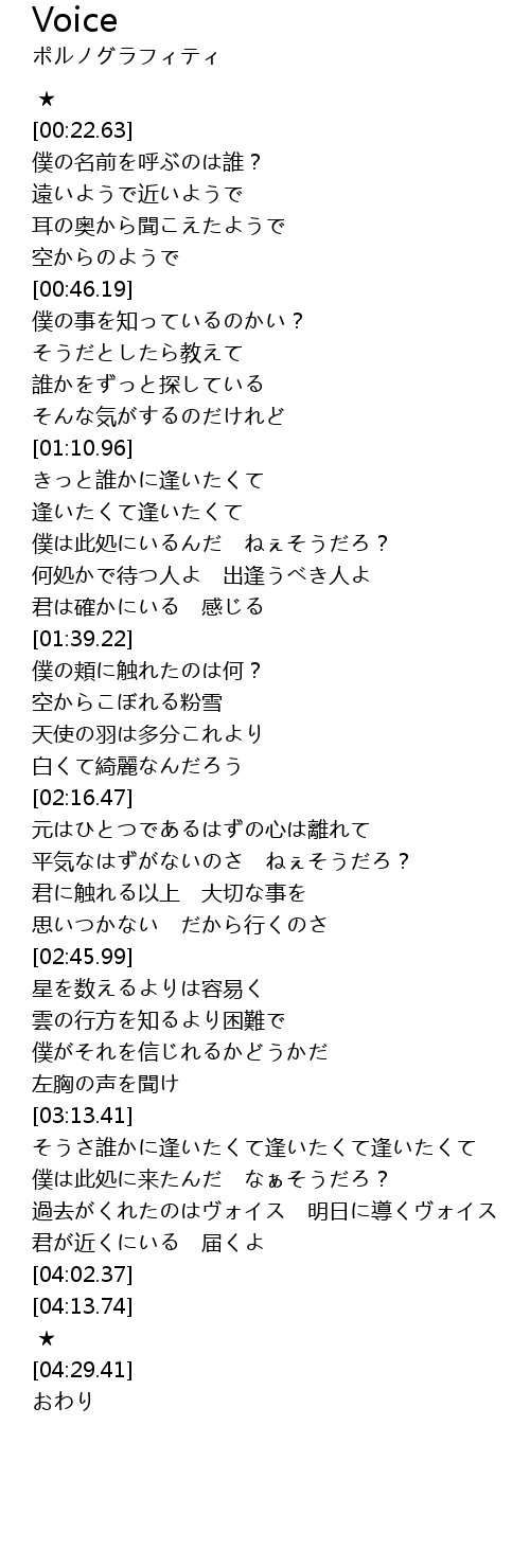 | [03:46.50] | 過去がくれたのはヴォイス 明日に導くヴォイス |