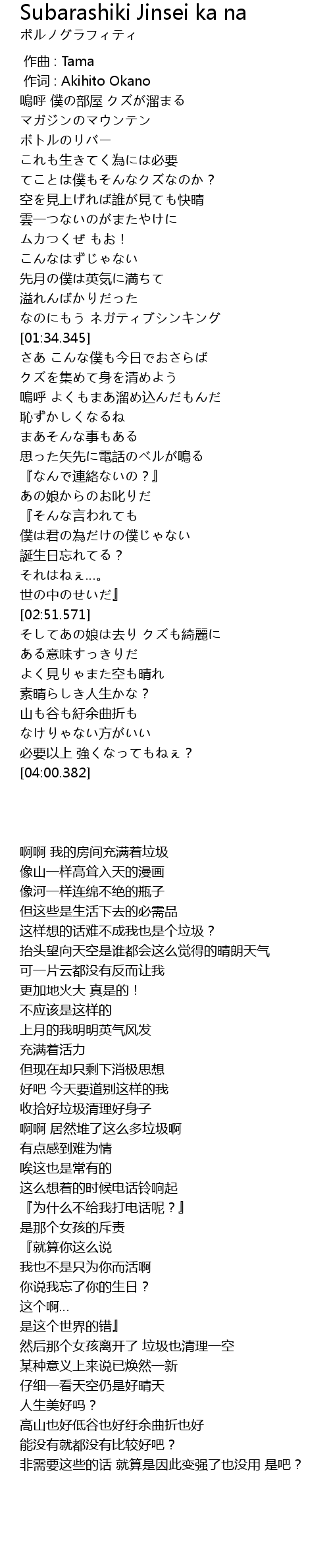 | [01:25.238] | なのにもう ネガティブシンキング |