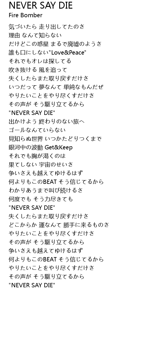 | "NEVER SAY DIE" |