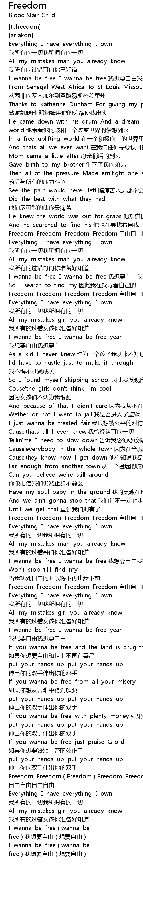 | [03:46.749] | Freedom Freedom Freedom Freedom Freedom zi you zi you zi you zi you |