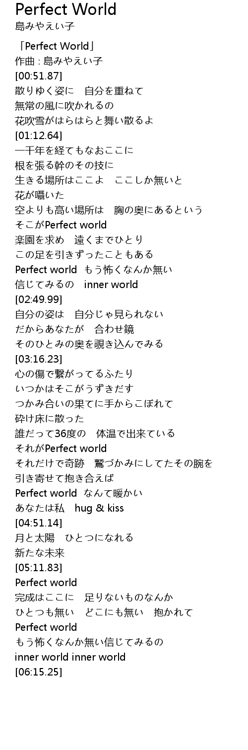 | [02:27.33] | Perfect world もう怖くなんか無い |