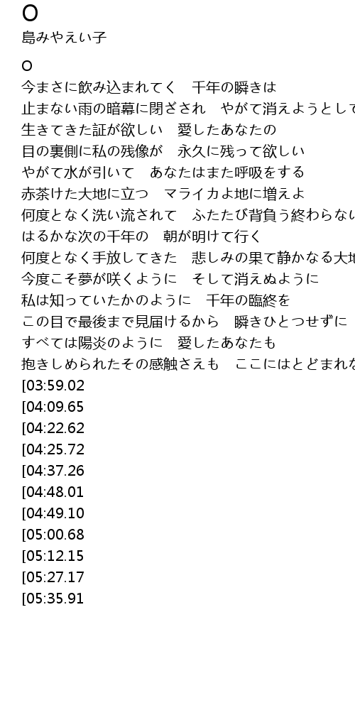 | [06:09.61][04:09.65] | 聞こえない 大地の歌 マライカよ震わせて |