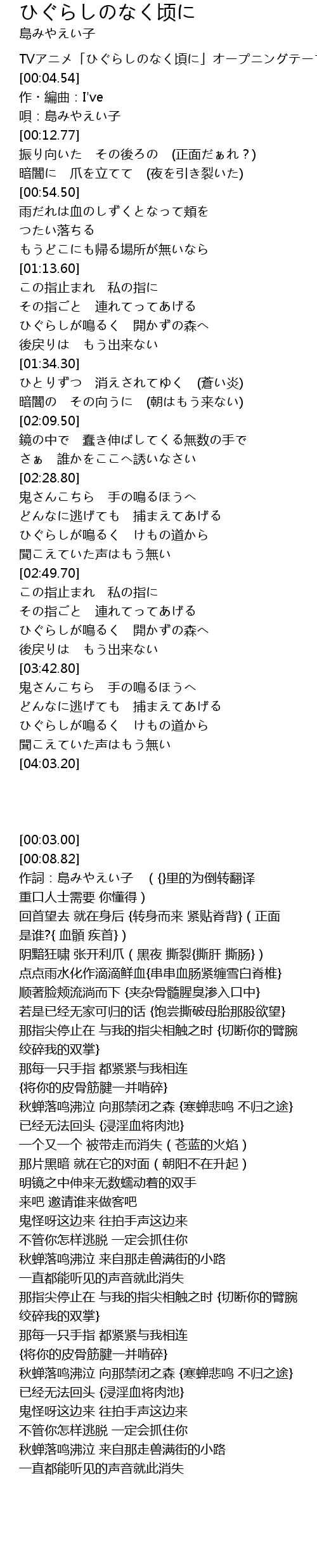 | [00:03.00] | TVアニメ「ひぐらしのなく頃に」オープニングテーマ |