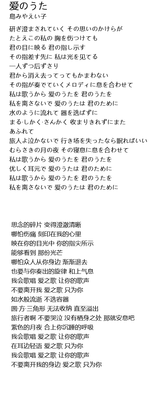 | [03:57.028] | 私は歌うから 爱のうたを 君のうたを |