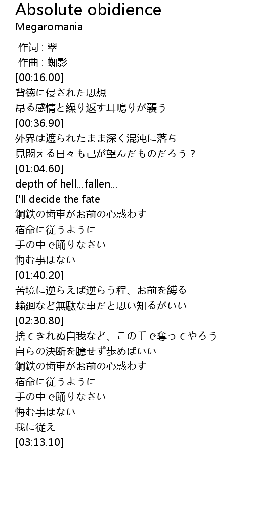 | Song | Absolute obidience |