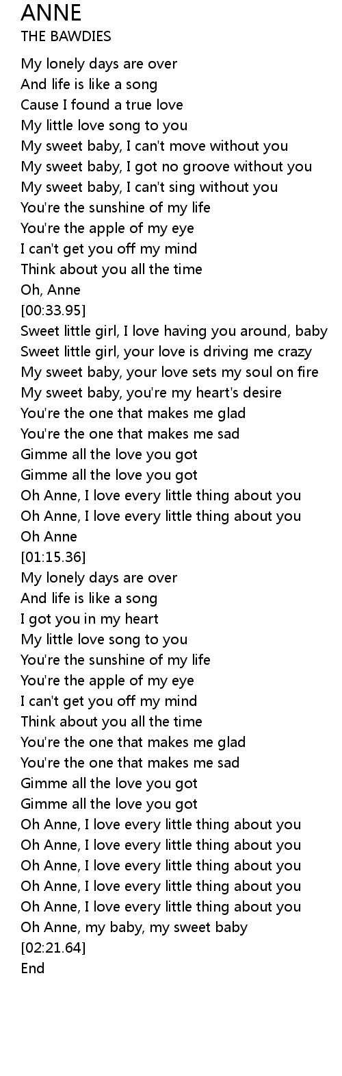 Oh Anne, my baby, my sweet baby |