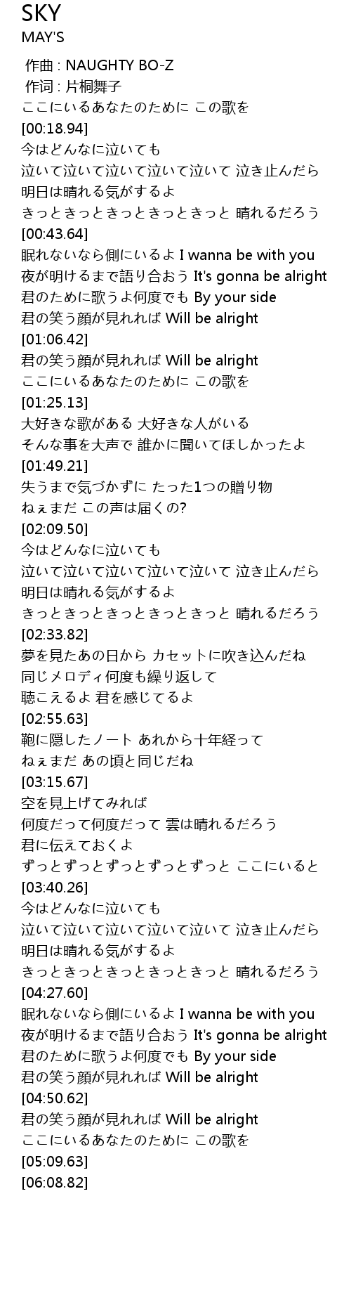 | [00:50.41] | 夜が明けるまで語り合おう It's gonna be alright |