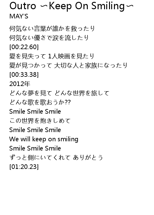 | [01:16.21] | ずっと側にいてくれて ありがとう |