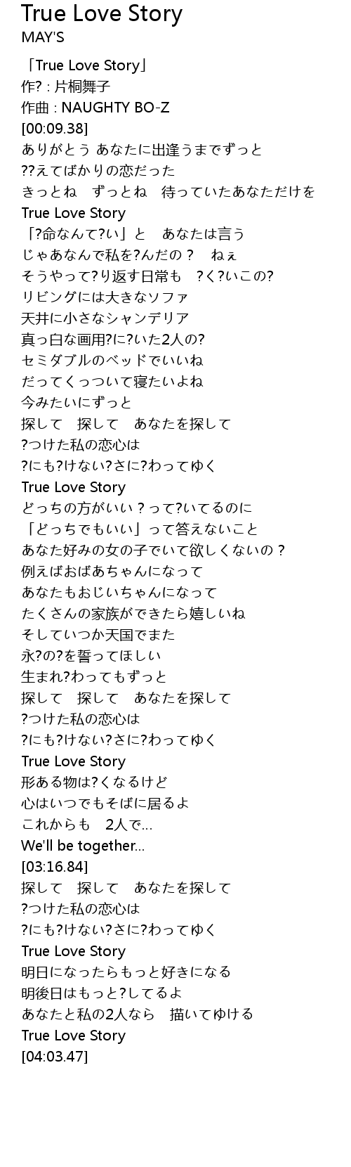 | [03:38.37] | True Love Story |