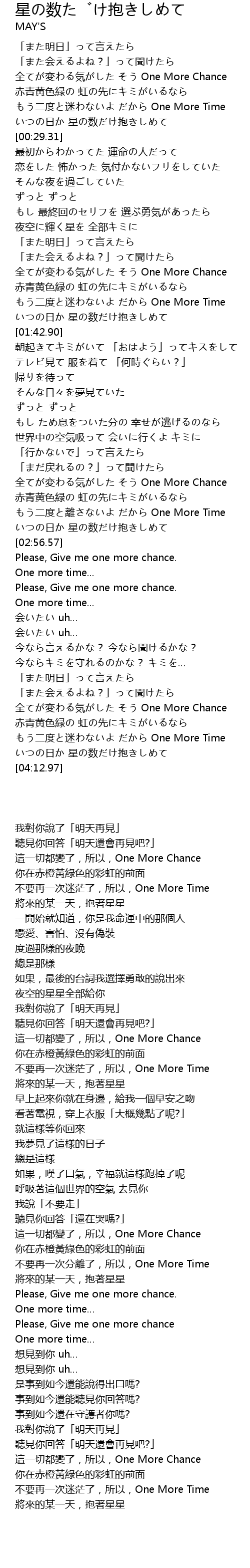 | [02:44.49] | もう二度と離さないよ だから One More Time |