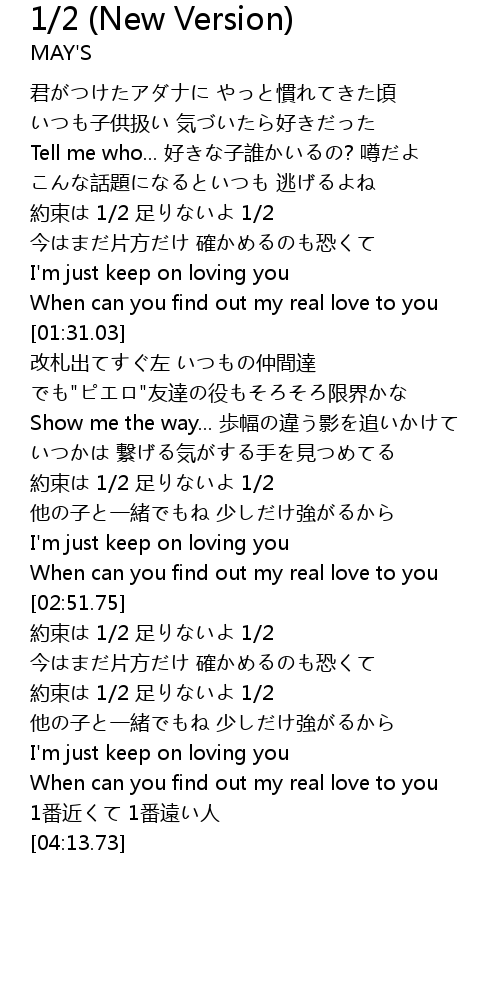 | [03:32.43] | 約束は 1/2 足りないよ 1/2 |