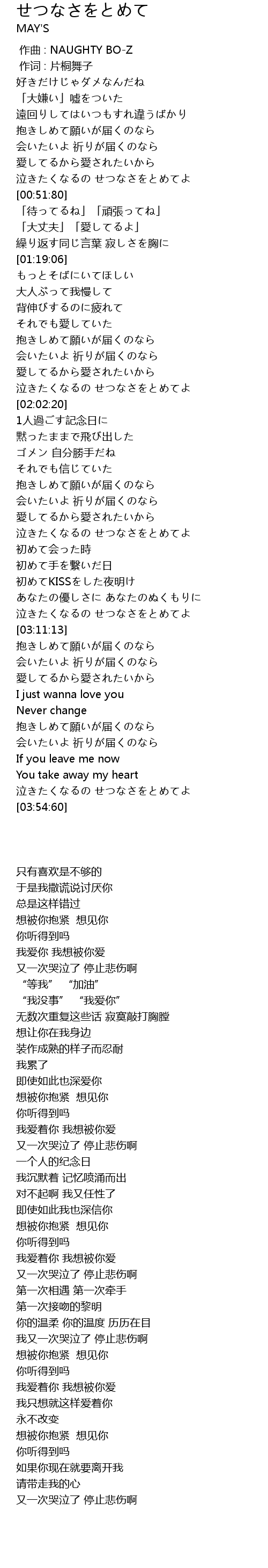 | [00:45:44] | 泣きたくなるの せつなさをとめてよ |