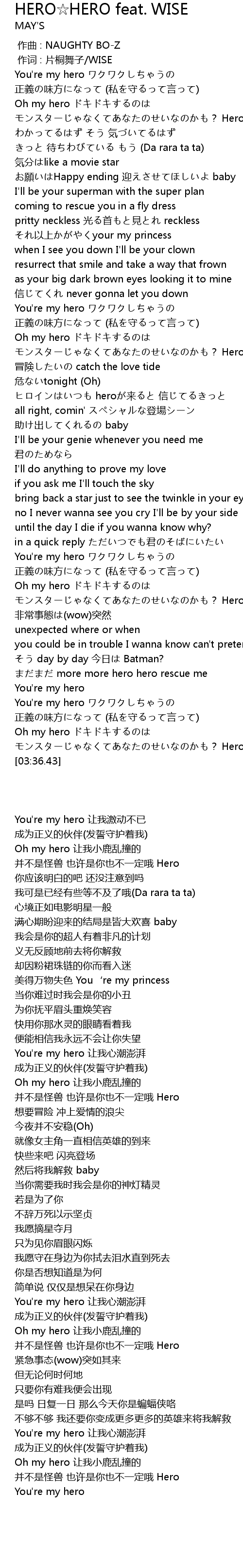 | [03:00.25] | まだまだ more more hero hero rescue me |