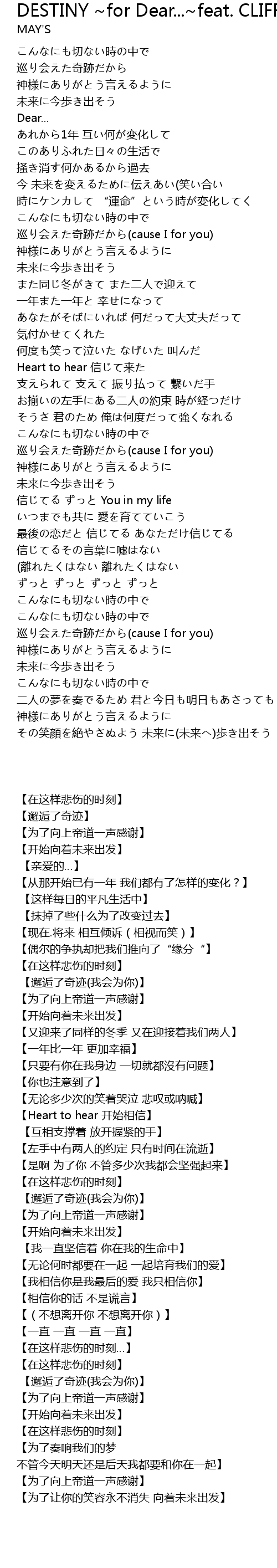 | Song | DESTINY ~for Dear...~feat. CLIFF EDGE |