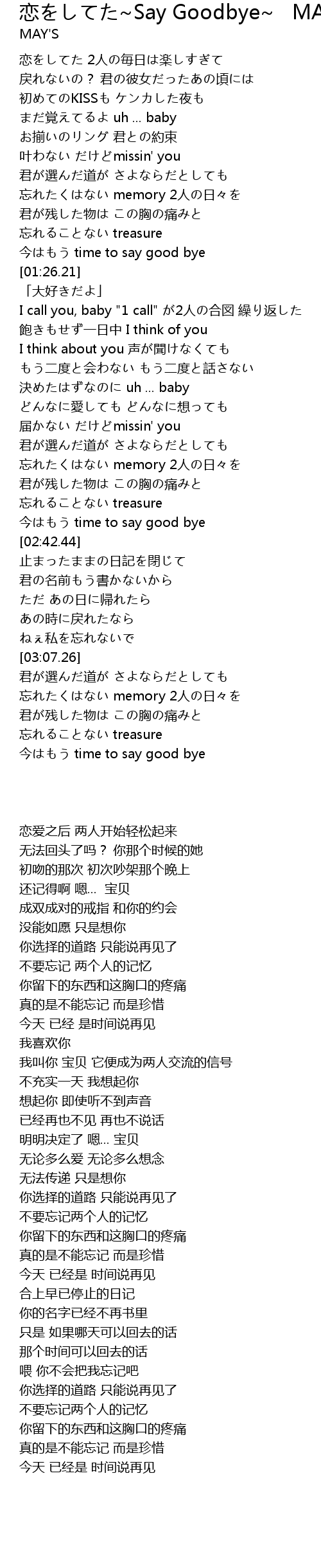 | Song | 恋をしてた~Say Goodbye~ MAY'S × May J |