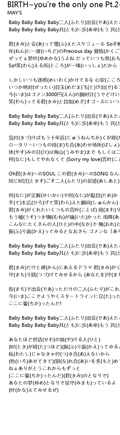 | Baby Baby Baby Baby共(とも)に歩(あゆ)もう 共(とも)に祝(いわ)おう Happy Happy Birthday | |