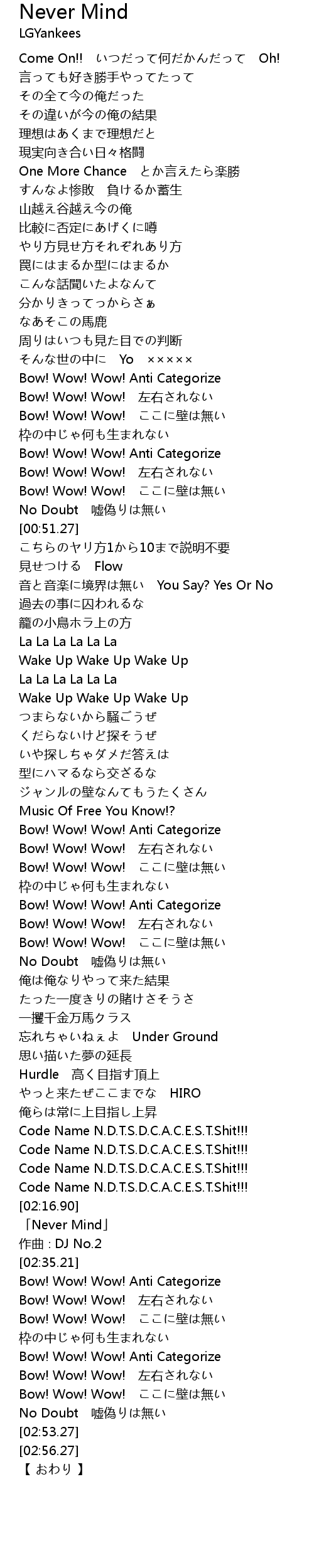 | [00:43.09] | Bow! Wow! Wow! Anti Categorize |