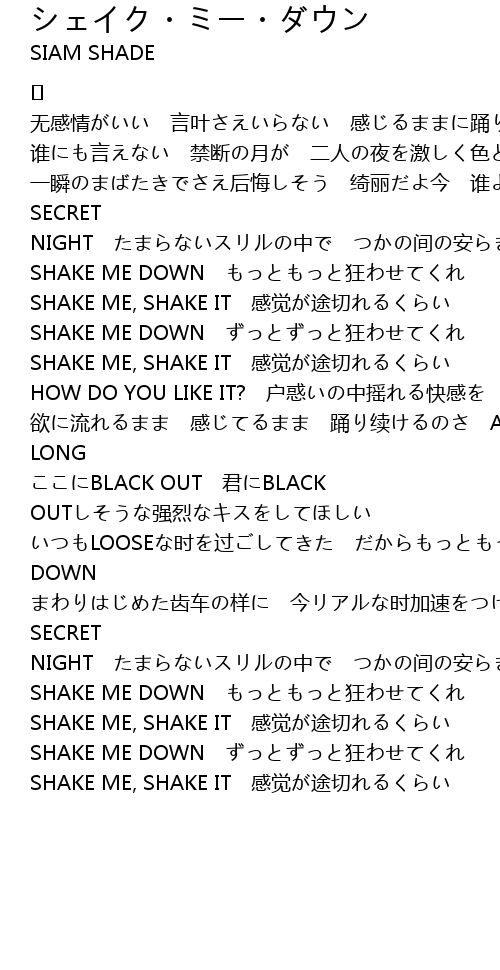 | SHAKE ME DOWN ずっとずっと狂わせてくれ | |