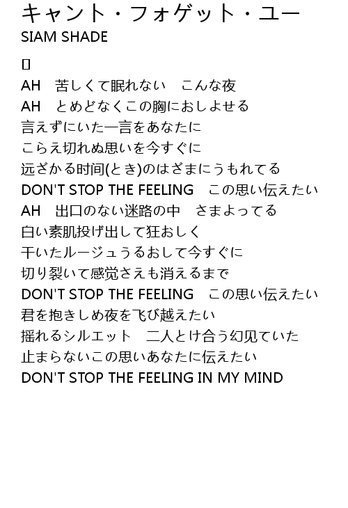 | DON'T STOP THE FEELING IN MY MIND |