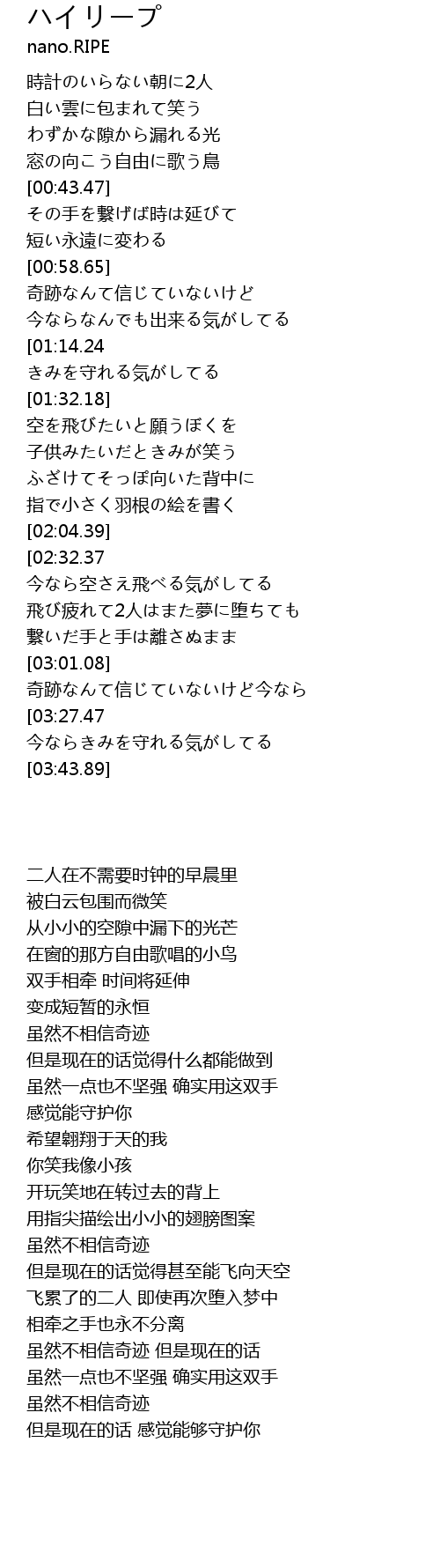 | [02:47.00] | 飛び疲れて2人はまた夢に堕ちても |