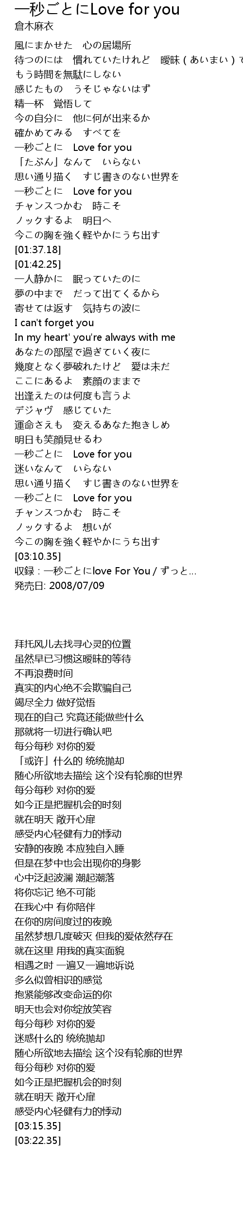 | [03:15.35] | 収録:一秒ごとにlove For You/ずっと… |