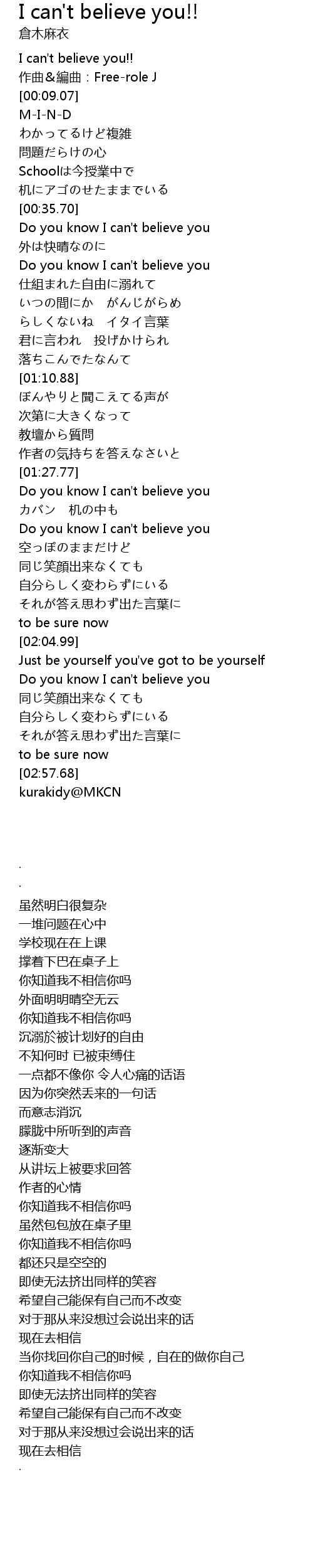 | [02:05.09] | Just be yourself you' ve got to be yourself |