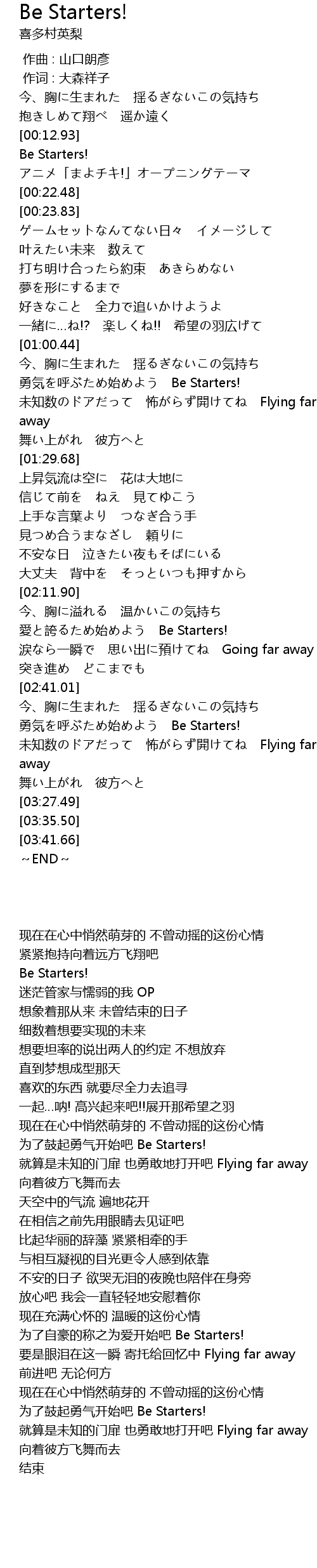 | [03:04.54] | 勇気を呼ぶため始めよう Be Starters! |