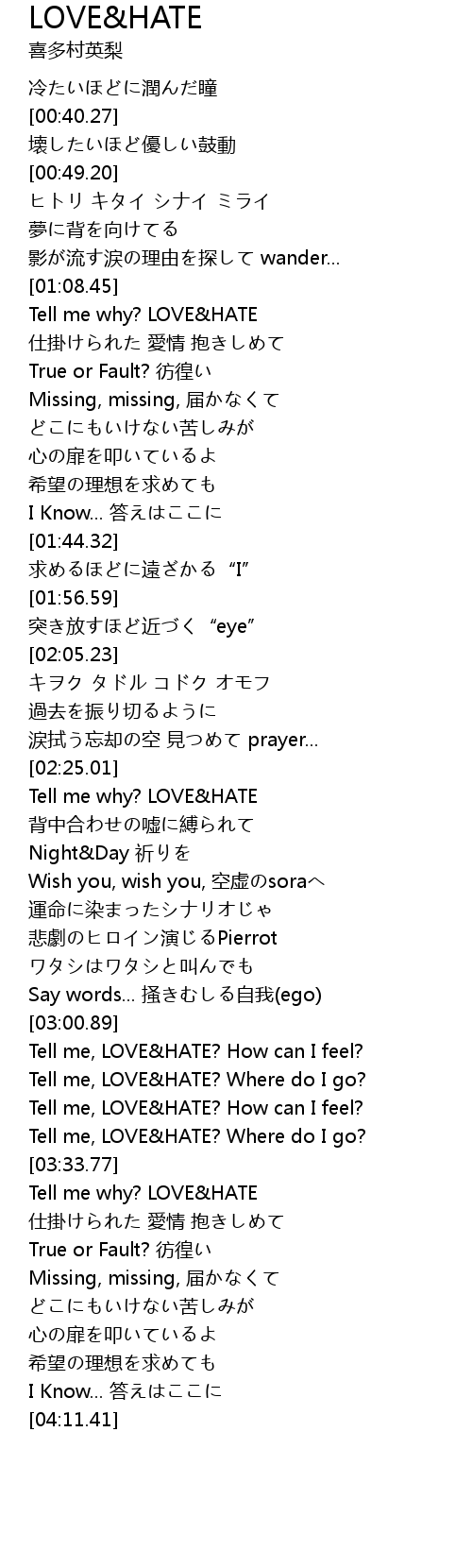 | [02:26.63] | Tell me why? LOVE&HATE |