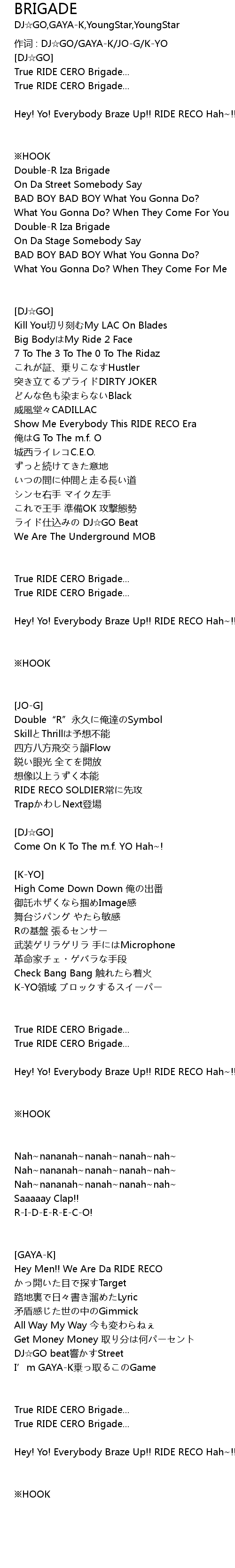 | 作词 : DJ☆GO/GAYA-K/JO-G/K-YO | |