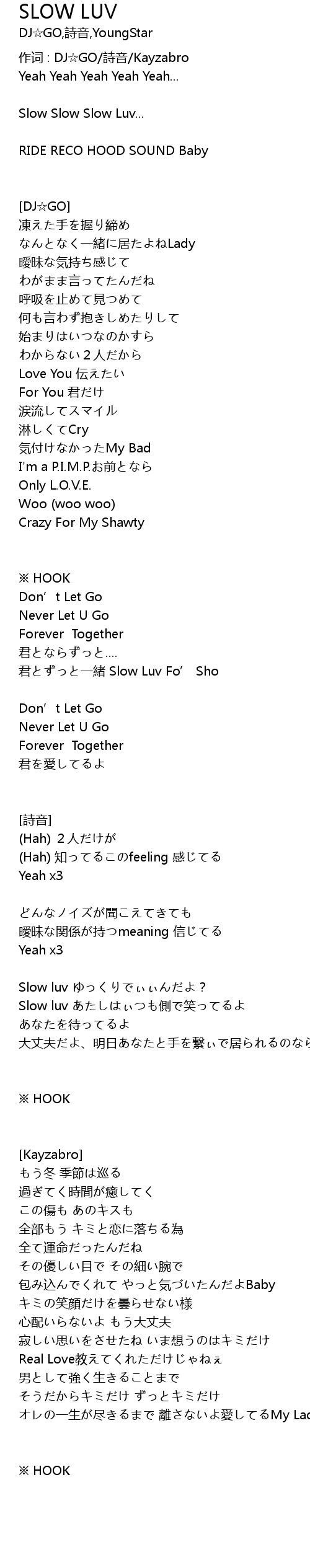 | 君とずっと一緒 Slow Luv Fo’ Sho | |