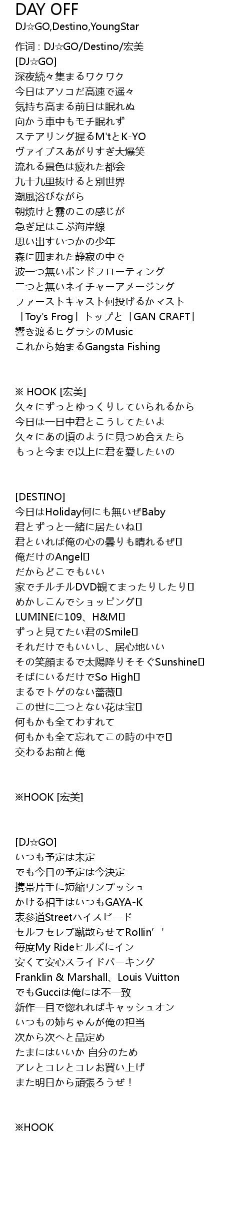 | 作词 : DJ☆GO/Destino/宏美 | |